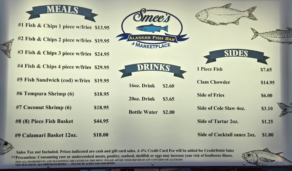 The Smee's Alaskan Fish Bar Menu delivers a straightforward, satisfying experience for seafood lovers looking for something fast, fresh, and classically comforting. Located on Kietzke Lane in Reno, this unpretentious spot centers its menu around the star of the show-crispy, golden fried fish-and supports it with just the right sidekicks to complete the plate. If you’re after a quick bite without compromising on flavor, Smee’s makes it easy to order, easy to love.